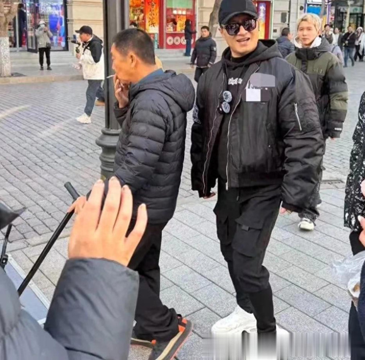 汪峰现身哈尔滨街头游玩, 他穿着一身羽绒服, 身材胖了好多